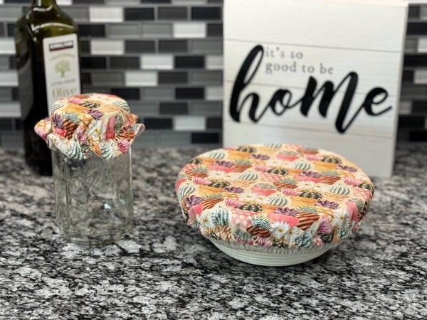 Simplify your life with these reusable bowl covers. Not only are they eco-friendly, but they make clean up a breeze because they have a waterproof (polyeurathene) lining that easily wipes clean.